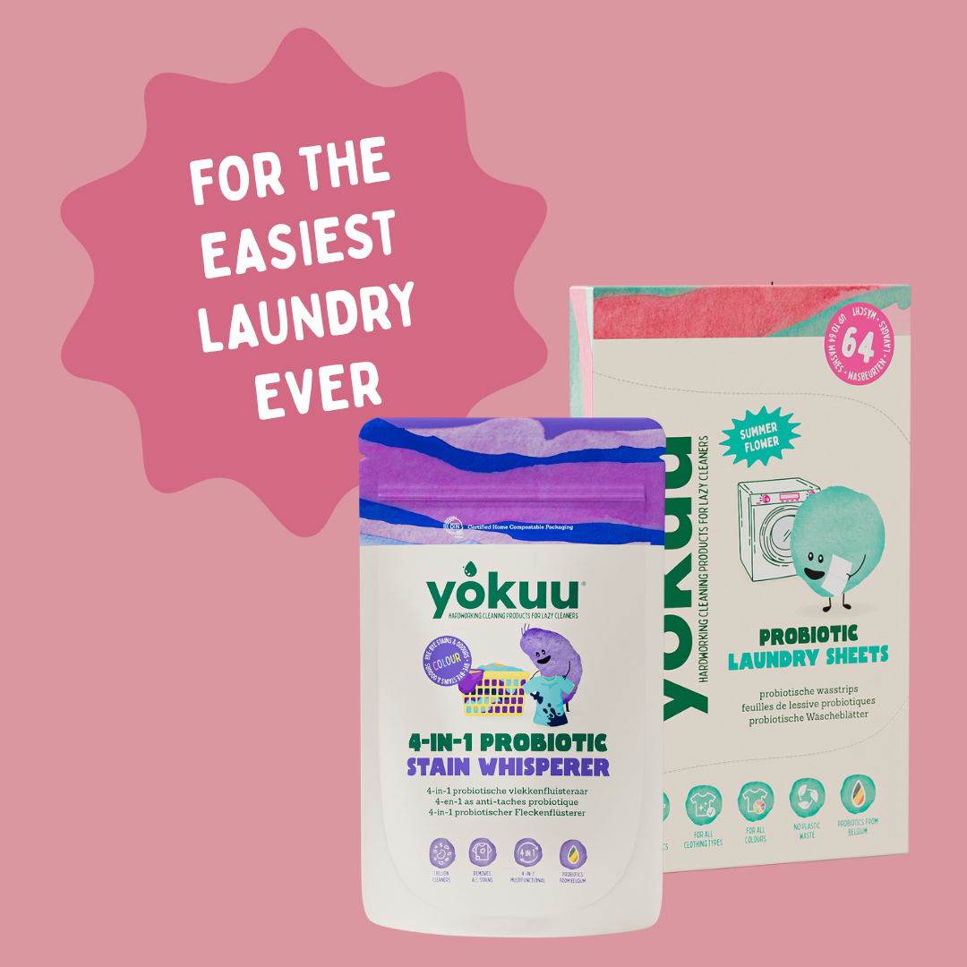 From your daily wash to your toughest curry stain, this probiotic laundry duo does it all. Our laundry sheets make washing easy-peasy. The Stain Whisperer tackles the hard stuff with enzymes and billions of cleaning helpers.