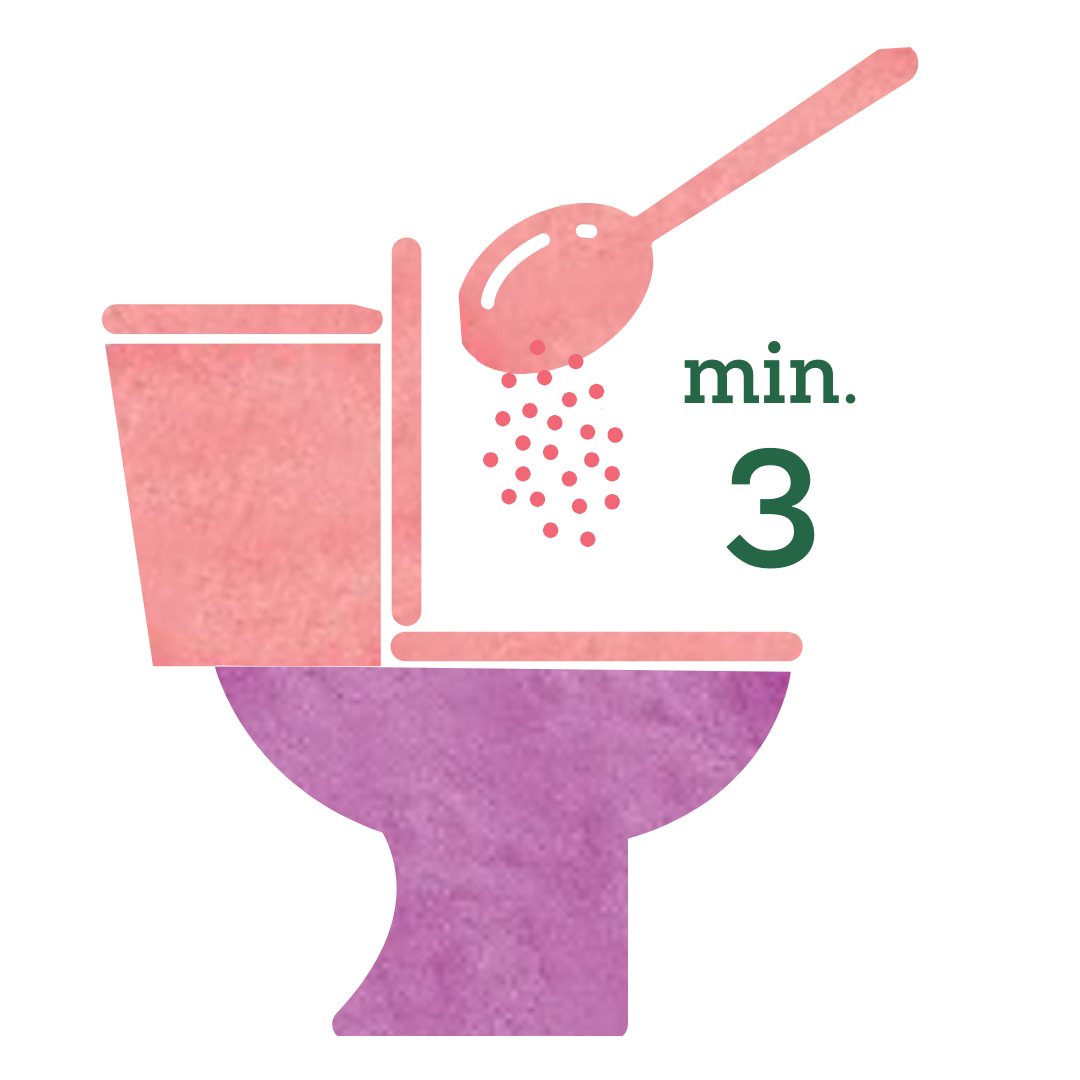 Sprinkle 2 heaped spoons (±100g) into the toilet bowl. For the best foam effect, add a splash of warm water first – it makes the foam rise faster and higher. Leave it to fizz for at least 3 minutes. Once the foam has settled, you can give a quick brush or let it sit longer for a deeper clean. Flush when you’re happy. For stubborn stains, leave it overnight. Use 1–2 times per week for best results.